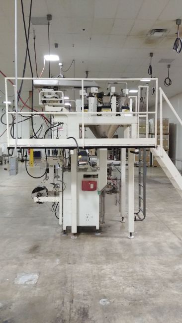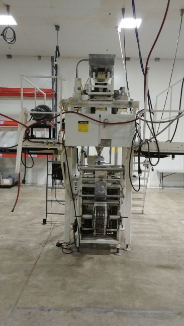 Woodman Comander Pacer Vertical Form/Fill/Seal. Model: CLC7150. Vertical form-fill-seal bagmaker with an 8-scale, radial, statistical weigher, Speeds up to 70 bags per minute, Used to fill various size bags of pressed candy pieces, The jaws are 9” Operating manual included, Also includes: Vibratory conveyor system by Eriez, Vacuum compressor by Fuji – alternative to entry conveyor Metal deck structure with steps and Mezzanine platform, Various sizes of forming tubes – 8 in total -- 1” (2), 1.5”, 2”, 3” (2), 3.5”, 4. As shown in Photos (Located Hunt Valley, Maryland)