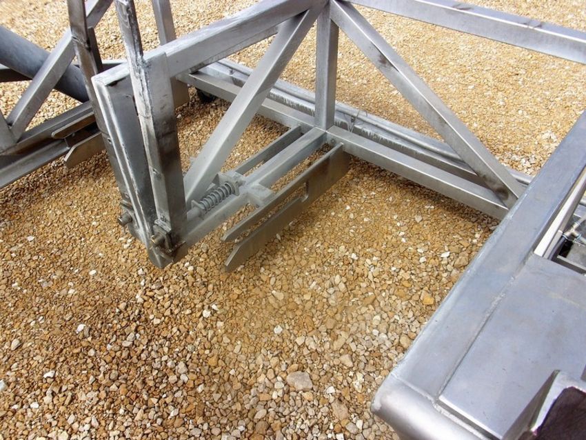 Dual Vemag S/S Cart Dumper, Unit last used in the dairy industry, Dump height is approx. 40 inches (Could be raised or lower with adjustable foot pads not provided), Unit is portable on casters, Dual air cylinders, Air operated, Carriage dimensions are 26 inches wide X 27 inches to lock bar, Overall dimensions are 80 inches wide X 54 inches deep X 42 inches high, There is no mfg tag but it appears to be an MTC (We will crate for 400 dollars to ship common carrier) (Loading Fee $100) (Located Hortonville, WI)