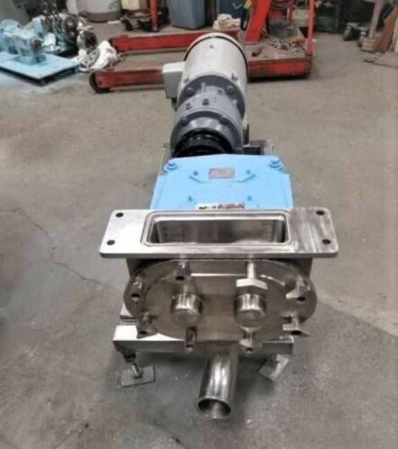 Waukesha SPX Model 134 Stainless Steel Sanitary Positive Displacement Pump, Serial # 300918 02 with Baldor 7 1/2 HP 208/230/460 Volt 1725 RPM, Mounted on a stainless steel frame with adjustable legs, 10 to 1 Dodge Gear Reducer, Rectangular inlet 4 1/2 inches X 15 1/4 inches, 3 1/2 Inch tri clamp outlet, Pump was just Reconditioned - Unit last used in the dairy industry, Crating fee of 250 dollars will apply to ship common carrier (Loading Fee $50) (Located Hortonville, WI)
