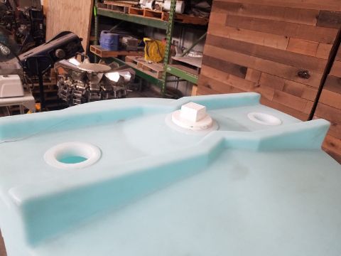 Aprox. 30" round x 44" height plastic tank, 1" outlet, 120 gallon (Handling, Loading & Site Management Fee: $25) (Located Fort Worth, TX)