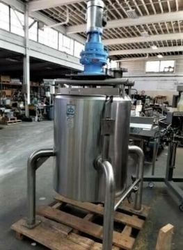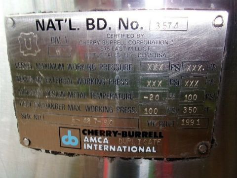 Cherry Burrell 100 Gal. Jacketed Agitated Kettle, National Board #3574, S/N E-487-90 with 2 hp S/S Washdown Drive Motor, 3/60/230/460 V, Single Motion Scrape Agitation Sides and Cone, 2-Zone Jacket Rated for 100 psi @ 350 degree F, 2-Piece Hinged Covers, 3" Center Bottom Outlet with Vvle, 12" Clearance from Outlet. This could be raised with Casters or Additional Length Added on. Overall Dimensions Aprox. 42"W x 42" Deep x 94" H including the Drive Motor, (Will Crate Unit at No Charge to Ship Common Carrier - Please inquire for Shipping Rates) (Located Hortonville, WI)