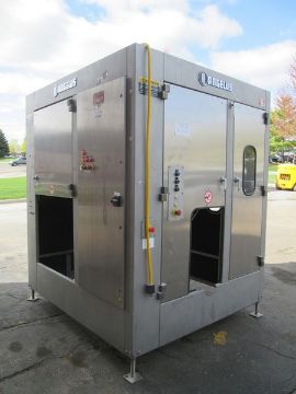 Angelus 53P DF Can Seamer -Three Head Atmospheric Can Seamer, Currently Set for 401 Dia. with Change Parts for 502 and 603 Dia., Disk Infeed, OEM Rated Speeds from 50 - 200 CPM, Full Parameter Interlock Guarding, Allen Bradley MicroLogix 1200 Controller, Fleetwood Vibratory Lid Feed, 1 hp, 230/460 V Motor, Built in 2000, Condition Used (Located Batavia, IL)