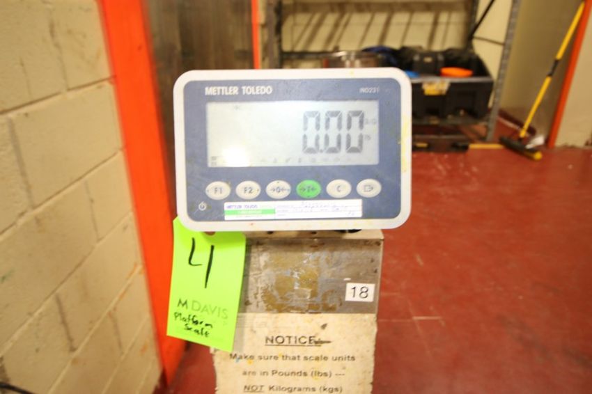 Mettler Toledo Digital Platform Scale, M/N BBA, S/N B633882505, 100 lb. Capacity, 100/200 Volts, with 12" L x 16" W S/S Platform, with Mounte on S/S Portable Cart (Old Tag #4) (Located Wappingers Falls, NY)