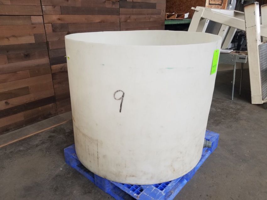 Aprox. 50" round x 40" high plastic tank, 2" outlet, 300 gallon (Handling, Loading & Site Management Fee: $50) (Located Fort Worth, TX)