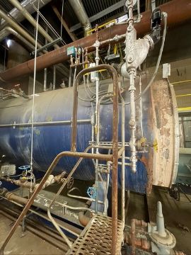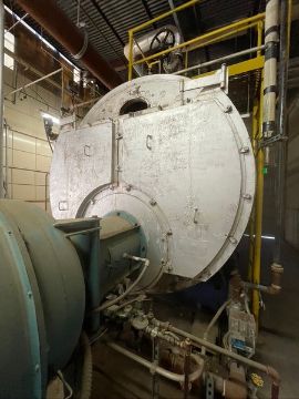 JOHNSON HORIZONTAL NATURAL GAS BOILER, CAT NO 528-AHG, S/N S-4604, 1,000 BTU/FT3, WITH ALLEN-BRADLEY POWERFLEX 400 VFD, EQUIPPED WITH BALDOR MOTOR 40/30 HP 3530/2950 RPM 208-230/460 V (Old Tag #782) (Located Hughson, CA)