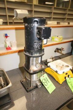 Grundfos 0.75 hp Vertical Lab Pump, with Baldor 3450 RPM Motor, with Clamp Type Inlet/Outlet (Old Tag 84) (Located Wappingers Falls, NY)