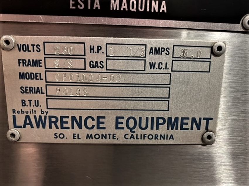 Lawrence Equipment Microcombo, Model 0P01004-02, S/N P0106, 230 V, 1 / 1/3 hp (Located Orlando, FL)