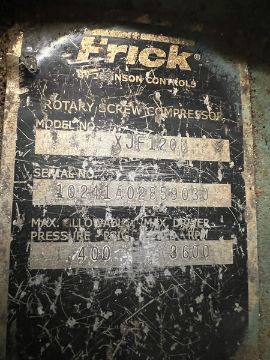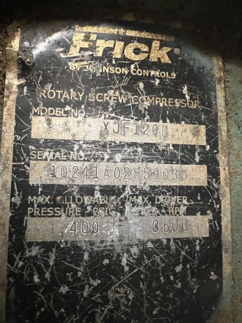 Frick 100 hp Rotary Screw Compressor, Model RXF30, S/N XJF120M-10241A02859030, RPM 3600, 400 PSIG (Located Perth Amboy, NJ)
