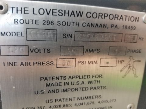 Loveshaw Little David CF20T case sealer, flap closer, serial # 21046720J, volt 120 (Handling, Loading & Site Management Fee: $100) (Located Fort Worth, TX)
