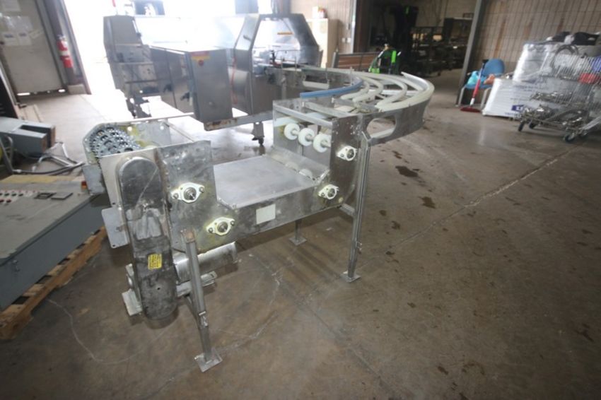 Multi-Conveyor 90 Degree Turn Conveyor, Overall Length: Aprox. 16' L, Belt to Floor Dims.: Aprox. 43" H, with S/S Clad Drive, Belt Width: Aprox. 21" (NOTE: Missing Belt; Believed to Work with Lot 60) (LOCATED IN APPLETON, WI) (Rigging, Handling, & Site Management Fee: $200.00 USD)
