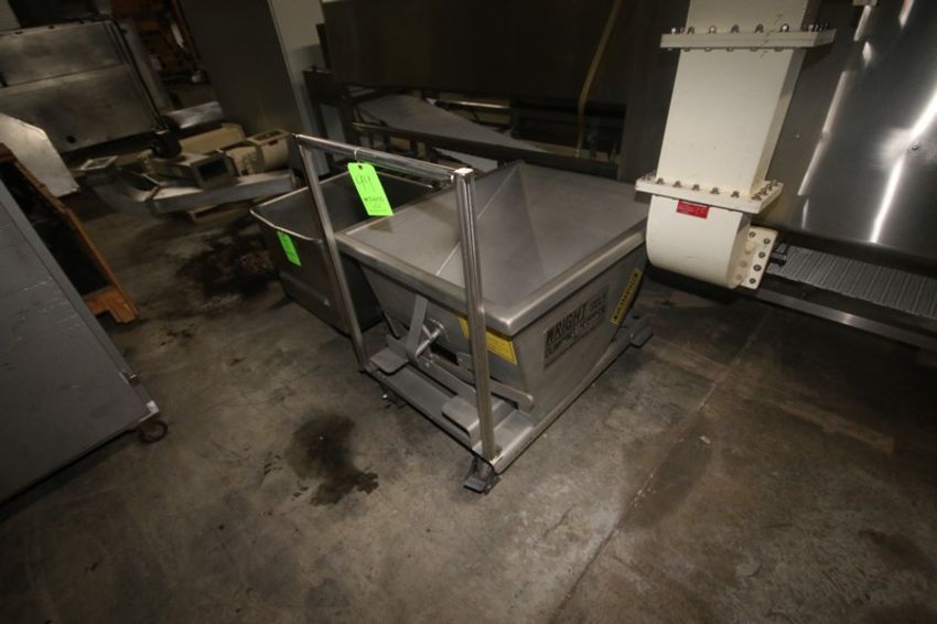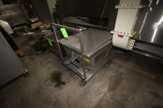 Wright S/S Shelf Dumping Hopper, with Tilt Capability, Mounted on S/S Portable Frame, with 1-S/S Tote on Casters (LOCATED IN APPLETON, WI) (Rigging, Handling, & Site Management Fee: $25.00 USD--Dry Van Ok for Transportation)