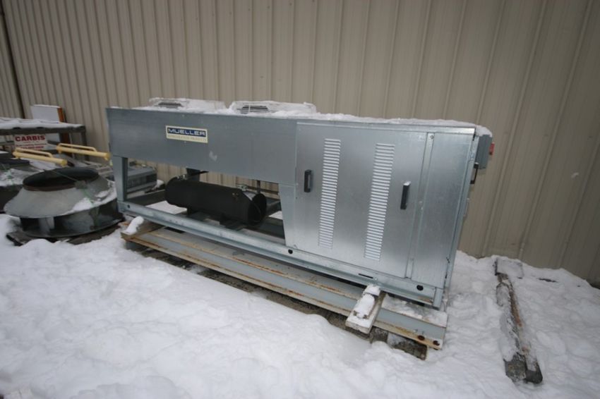 Mueller 2-Fan Refrigeration Condenser Unit, M/N ACU1A010M5N042PMF3, S/N 091512, Refrigerant R404A, Includes I-Beam Base (LOCATED IN APPLETON, WI) (Rigging, Handling, & Site Management Fee: $300.00 USD)