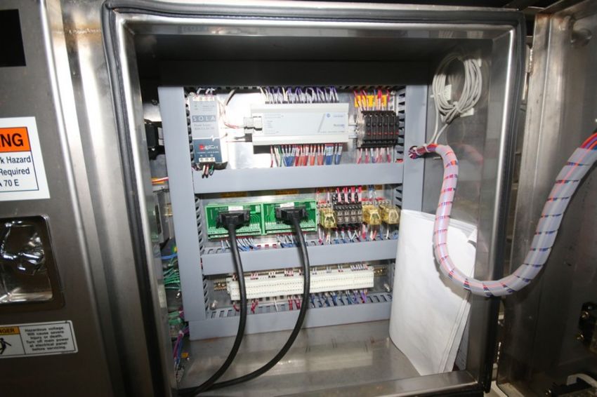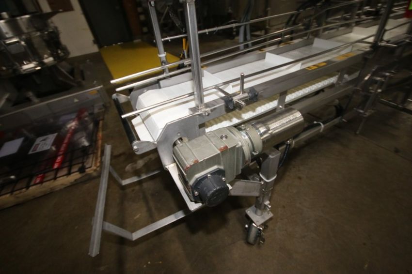 Custom S/S Indexer, with Aprox. 12" W Belt with Flights, Flight Spacing Aprox. 16", with Allen-Bradley PanelView 300, with Allen-Bradley Micro-Logix 1000 PLC, Mounted on S/S Portable Frame (LOCATED IN APPLETON, WI) (Rigging, Handling, & Site Management Fee: $200.00 USD)