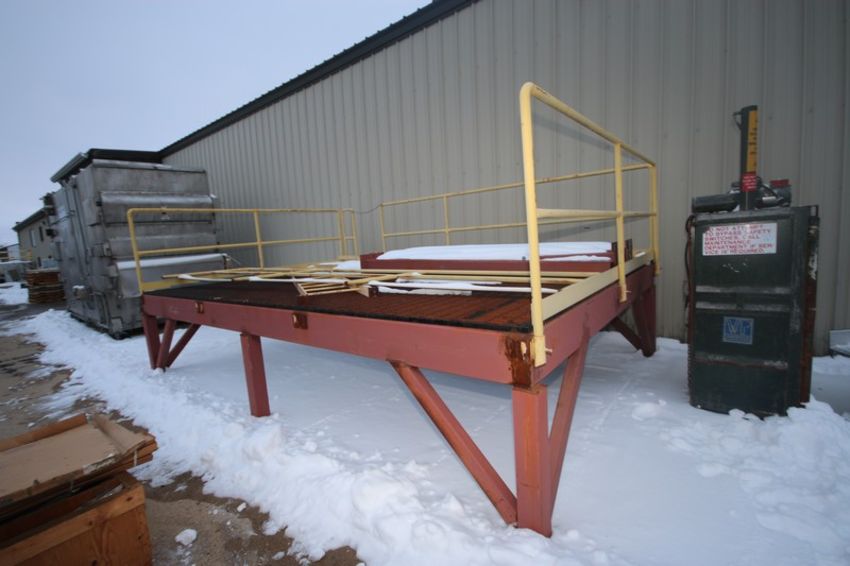 Steel Platform, with Steel Grating & Hand Rails, with Overall Dims.: Aprox. x 16' L x 11' W x 44" H (Platform to Ground)(LOCATED IN APPLETON, WI) (Rigging, Handling, & Site Management Fee: POA USD)