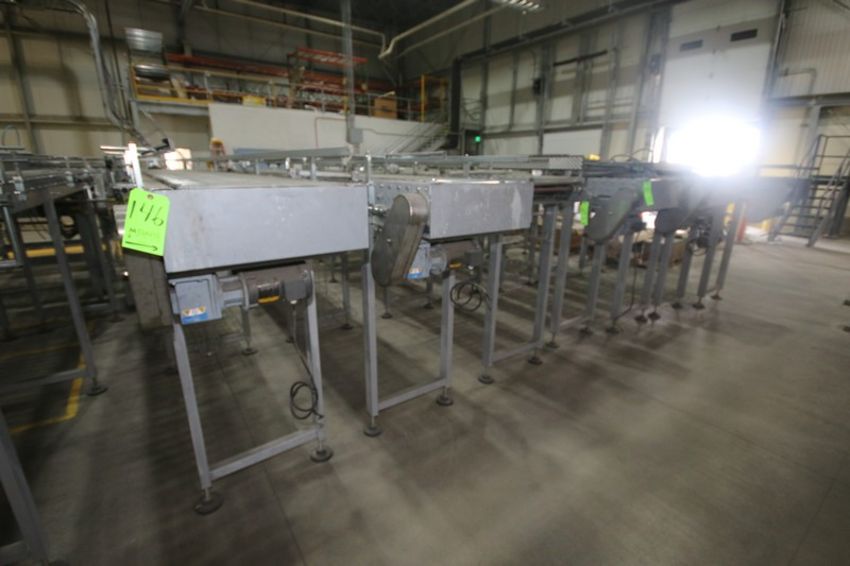 3-Sections of Straight Roller Conveyor, Rolls to Ground Height: Aprox. 58-1/2" H with Guides, Overall Length: Aprox. 158" L, with Aprox. 19" W Rolls, with 0.5 hp Baldor Drive (LOCATED IN BURLEY, ID) (Rigging, Handling, & Site Management Fee: $250.00 USD)