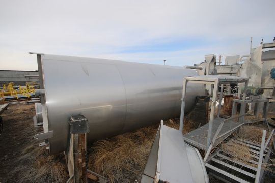 Aprox. 2,500 Gal. S/S Vertical Waste Water Treatment Tank, Tank Dims.: Aprox. 172" L x 70" Dia., with Dish Bottom, Mounted on S/S Legs (LOCATED IN BURLEY, ID) (Rigging, Handling, & Site Management Fee: $550.00 USD)