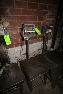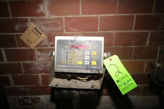 Fairbanks S/S Platform Digital Scale, M/N QuickSilver, Capacity 100 lbs. x 0.5 lbs., S/S Platform Dims.: Aprox. 18" L x 18" W, Mounted on S/S Stand (LOCATED IN GRAND ISLAND, NE) (Rigging, Handling, & Site Management Fee: $50.00 USD)