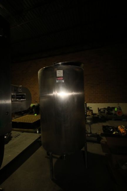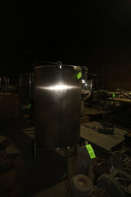 300 Gal. Vertical S/S Single Wall Tank, with Slope Bottom, Mounted on S/S Legs, with S/S Hinge Lids, with S/S CIP Spray Ball (LOCATED IN GRAND ISLAND, NE) (Rigging, Handling, & Site Management Fee: $275.00 USD)