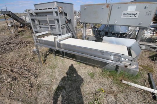 Straight Section of S/S Conveyor, Aprox. 92" L with Aprox. 17-1/2" W Belt, Mounted on S/S Frame (LOCATED IN GRAND ISLAND, NE) (Rigging, Handling, & Site Management Fee: $325.00 USD)