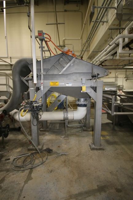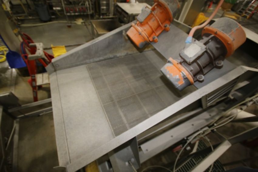 GME Inc. S/S Dewatering Deck, M/N H1/160, S/N 0922952, with Dual Top Mounted Vibratory Motors, Deck Internal Dims.: Aprox. 78" L x 35-1/2" W, with Pourest Bottom, Deck to Ground Dims.: Aprox. 76" H, Mounted on S/S Frame(***SUBJECT TO THE BULK BID FOR LOT 60A***) (LOCATED IN GRAND ISLAND, NE) (Rigging, Handling, & Site Management Fee: $450.00 USD)