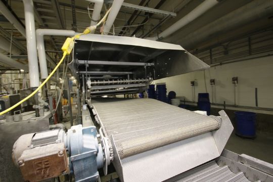 Nothum PRO-Therm Curing Belt, with Fristam 25 hp Centrifugal Pump, M/N FPX1151-260, S/N FPX1151015101595, 230/460 Volts, 3 Phase, with Aprox. 34" W Belt, with (2) Drives, Upper Deck Hydraulically Driven, Aprox. 30' Total Length, Mounted on S/S Frame(***SUBJECT TO THE BULK BID FOR LOT 60A***) (LOCATED IN GRAND ISLAND, NE) (Rigging, Handling, & Site Management Fee: $950.00 USD)