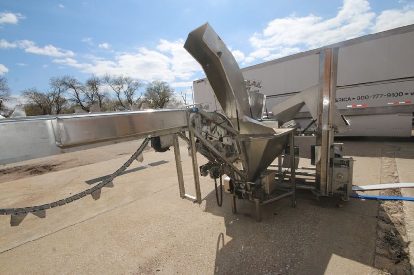 S/S Onion Slicer, with S/S Infeed Hopper, with Infeed S/S Link Conveyor (LOCATED IN GRAND ISLAND, NE) (Rigging, Handling, & Site Management Fee: $325.00 USD)