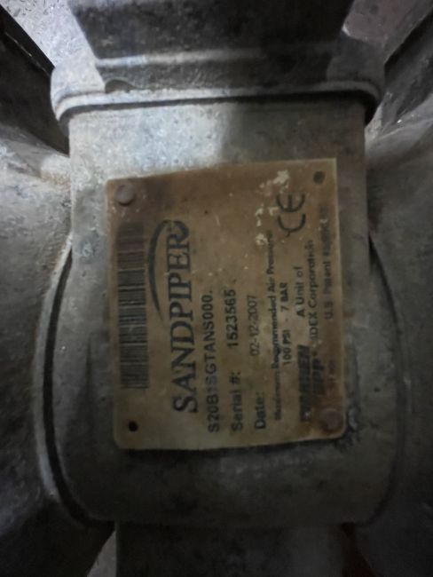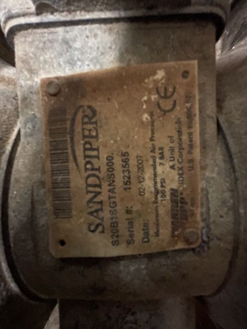 WARREN RUPP SANDPIPER S/S DIAPHRAGM PUMP, S/N 1523565, MODEL S20B1SGTANS000