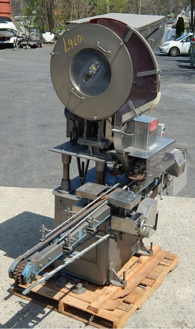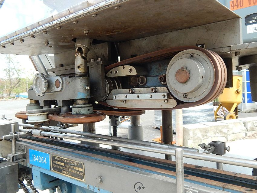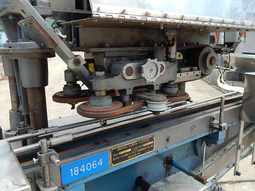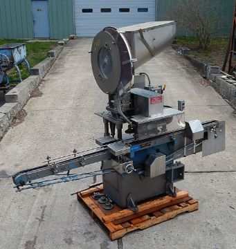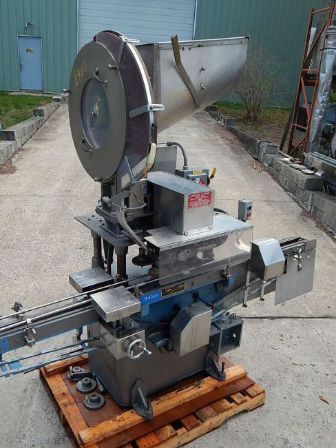 RESINA SNAP ON CAPPER, MODEL P22H94, SERIAL # 836432. FEATURES SET UP FOR 48 MM SNAP ON CAP WITH ALIGNMENT ARROW AS SEEN ON ASPRIN PRODUCTS LIKE TYLENOL,  AUTOMATIC STAINLESS STEEL SORTING HOPPER WITH ELECTRIC EYE ACTIVATED SHUT OFF AND VARIABLE SPEED DRIVE, 8' LONG CONVEYOR FOR 4.5" WIDE TABLE TOP CHAIN, ADJUSTABLE BOTTLE TIMING WHEELS, VARIABLE SPEED DRIVE, RATED FOR 120 CPM, EXTERNALLY PAINTED WITH CONLUX "STEEL IT" AND WITH ALL ELECTRICAL SWITCH GEAR WIRED FOR 440 VOLT SERVICE.