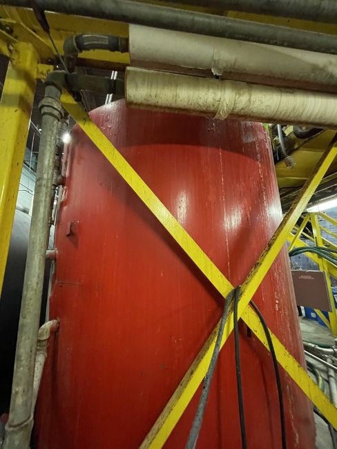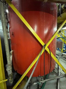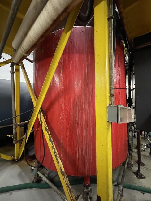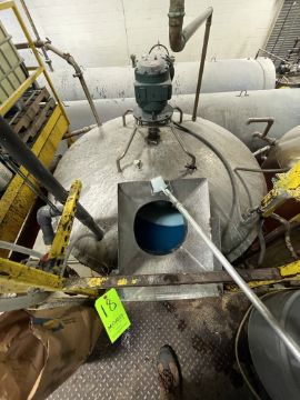 2,750 S/S JACKETED KETTLE WITH TOP-MOUNT AGITATION, PAINTED EXTERIOR, MOUNTED ON LOAD CELLS