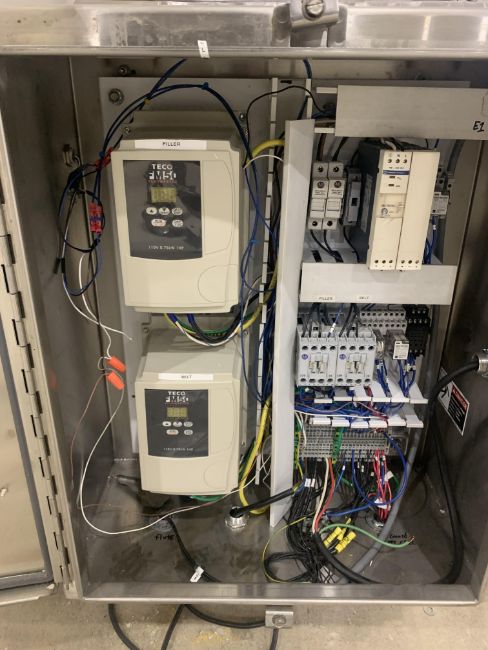 MRM 18-VALVE ROTARY FILLER, RIGHT HAND FILLER, 8 OZ BOTTLES @ 180 BPM, 4-1/4" CENTERS, 1/2" NOZZLES, NEW CONTROLS AND FULLY RECONDITIONED, SET UP WITH MOVEABLE CONTROL PANEL TO OPERATE FROM EITHER SIDE