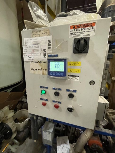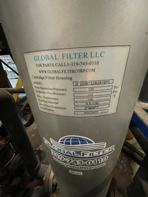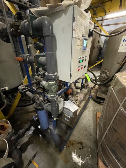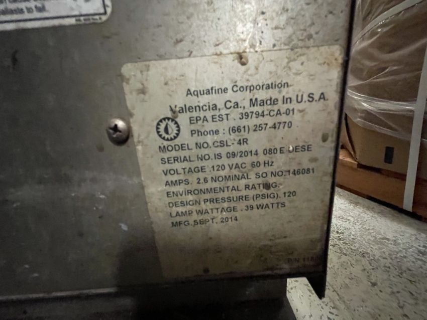 WATER PURIFICATION SKID, AQUAFINE UV LIGHT, MODEL CSL-4R, S/N 09/2014 080 E DESE, 120 V, GLOBAL FILTER INLINE S/S FILTER, MODEL GCHB732M2615PC, 150 PSI, GRUNDFOSS PUMP,