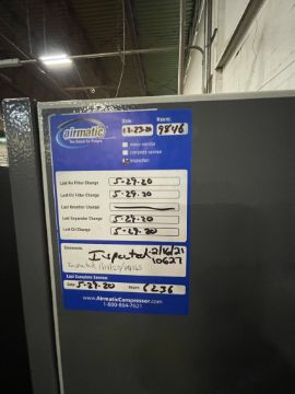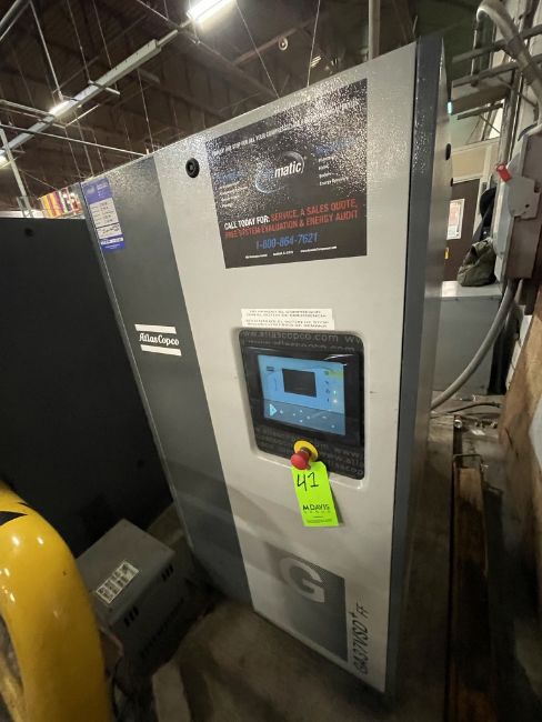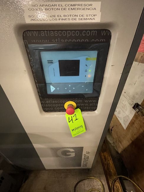 2018 ATLAS COPCO AIR COMPRESSOR, MODEL GA37VSD+ FF, S/N AP1838321, 50 HP, 185 PSI, 9000 R/MIN