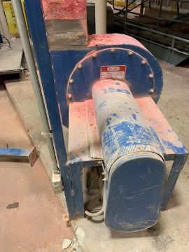 Dust collector (MFG unknown) with pulse jet cleaning system and Dayton paddle wheel style blower with 19.5” diameter fan. Bag house is 48” x 48” x 110” tall less discharge height. Dust Collector has been disassembled for shipping and is laid down for loading  formerly working in cosmetic service and ships from Monroe Twp. NJ (loading fee applies $ 500.00)