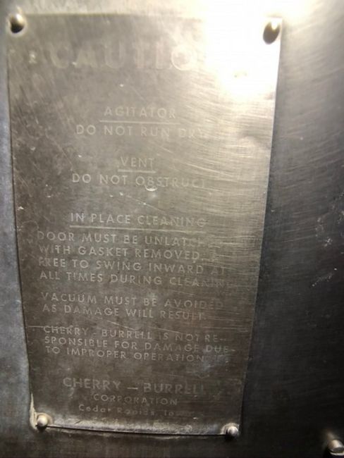 CHERRY BURRELL APPX. 15,000 GALLON JACKETED SILO, EQUIPPED WITH VERTICAL AGITATION, WCB INLET VALVE, CREAM TANK 2A (APPX. 126''DIAM. X 275''H) (RIGGING, SITE MANAGEMENT AND LOADING FEE $5,400.00) (DOES NOT INCLUDE PACKAGING, SKIDDING, PALLETIZING, CRIBBING, CRATING, ETC.)