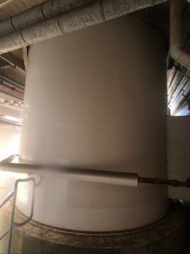 30,000 GALLON JACKETED SILO WITH VERTICAL AGITATION AND INLET VALVE (APPX. 145''DIAM. X 415''H), CREAM TANK 4A (RIGGING, SITE MANAGEMENT AND LOADING FEE $5,400.00) (DOES NOT INCLUDE PACKAGING, SKIDDING, PALLETIZING, CRIBBING, CRATING, ETC.)