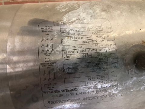 AMPCO ALL S/S WASHDOWN WHOLE MILK PUMP, 10 HP, 3500 RPM, 230/460 (SUBJECT TO BULK BID) (RIGGING, SITE MANAGEMENT AND LOADING FEE $75.00) (DOES NOT INCLUDE PACKAGING, SKIDDING, PALLETIZING, CRIBBING, CRATING, ETC.)
