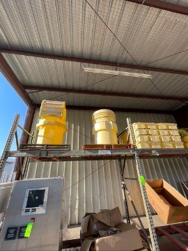ASSORTED SPILL CONTAINMENT PALLETS, SOME ENPAC POLY SLIM-LINE 6000, DUNNAGE RACKS AND ADDITIONAL CHEMICAL STORAGE (RIGGING, SITE MANAGEMENT AND LOADING FEE $250.00) (DOES NOT INCLUDE PACKAGING, SKIDDING, PALLETIZING, CRIBBING, CRATING, ETC.)