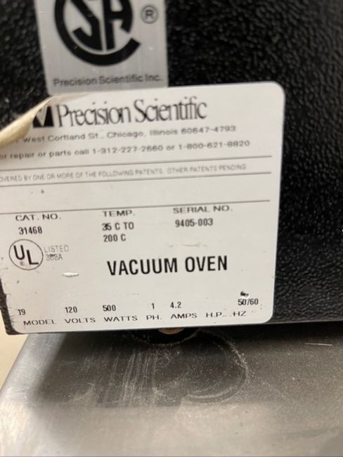PRECISION VACUUM OVEN, MODEL 19, WITH MARATHON ELECTRIC PUMP, INCLUDES S/S RACK (RIGGING, SITE MANAGEMENT AND LOADING FEE $15.00) (DOES NOT INCLUDE PACKAGING, SKIDDING, PALLETIZING, CRIBBING, CRATING, ETC.)