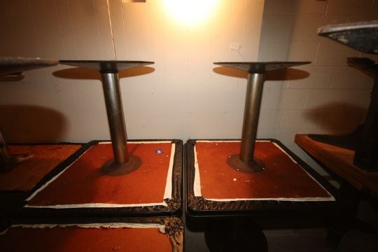 (6) Square Top Tables, with Plastic Table Top & Round Bottoms (Located in Adamstown, PA--New Roof Warehouse) (Rigging, Loading & Site Management Fee: $10.00 USD)