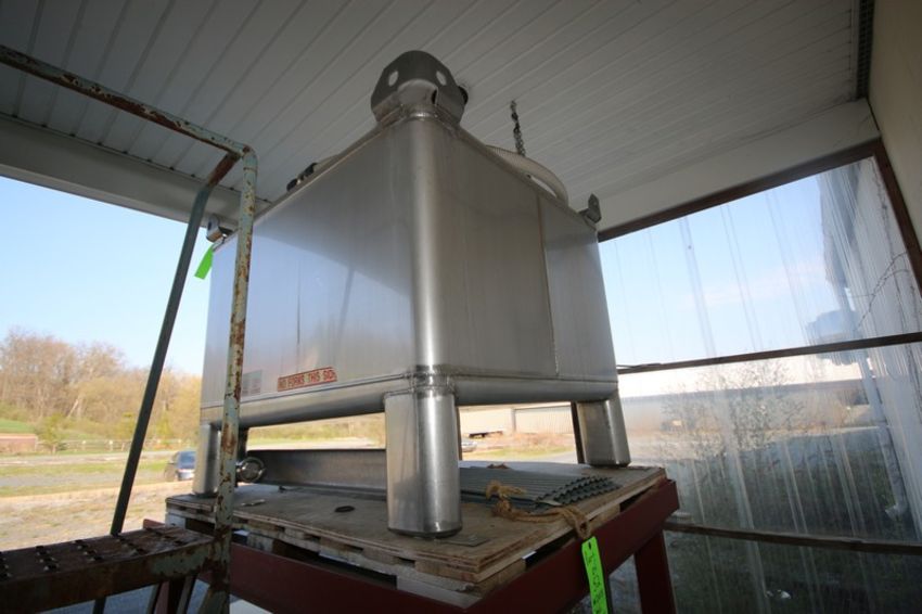 TranStore S/S 250 Gal. Receiving Tote, M/N 5162350, S/N 56C9-1, 304 S/S, with Rack & Stairs, Overall Dims. of Tote & Rack: Aprox. 56" L x 48" W x 101-1/2" H (Located in Adamstown, PA--Creamery) (Rigging, Loading & Site Management Fee: $100.00 USD)