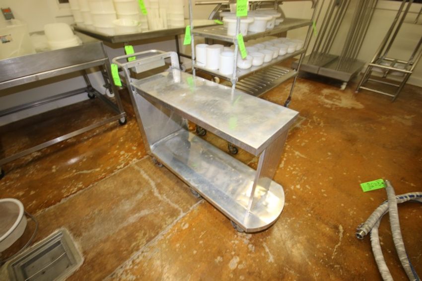S/S Cart, Overall Dims.: Aprox. 55" L x 18" W x 38" H, with Upper & Lower Deck, On Casters (Located in Adamstown, PA--Creamery) (Rigging, Loading & Site Management Fee: $10.00 USD)