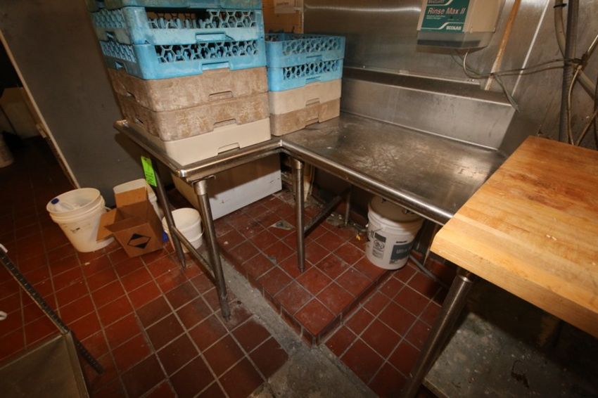 Butcher Block Table Top Table, with S/S Bottom Shelf, Overall Dims.: Aprox. 48" L x 30" W x 40" H, Mounted on Casters, with 1-Corner S/S Table, Overall Dims.: Aprox. 60" L x 48" W x 39" H (Located in Adamstown, PA--Restaurant Kitchen) (Rigging, Loading & Site Management Fee: $25.00 USD)