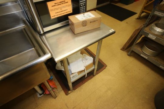 S/S Tables, (2) with S/S Bottom Shelves & (1) with Casters, Overall Dims.: Aprox. 25" L x 24" W x 28" H; Aprox. 30" L x 30" W x 28" H; Aprox. 30" L x 24" W x 34-1/2" H (Located in McMurray, PA) (Rigging, Loading & Site Management Fee: $25.00 USD)