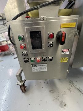 MBC FOOD MACHINERY CORP 6-WIDE RAVIOLI MACHINE, MODEL 3-100, S/N NPP1109R, CURRENTLY SET UP FOR MEDIUM SQUARE RAVIOLI, REPORTED 800 - 900 LB / HR, MITSBUBISHI CONTROLS