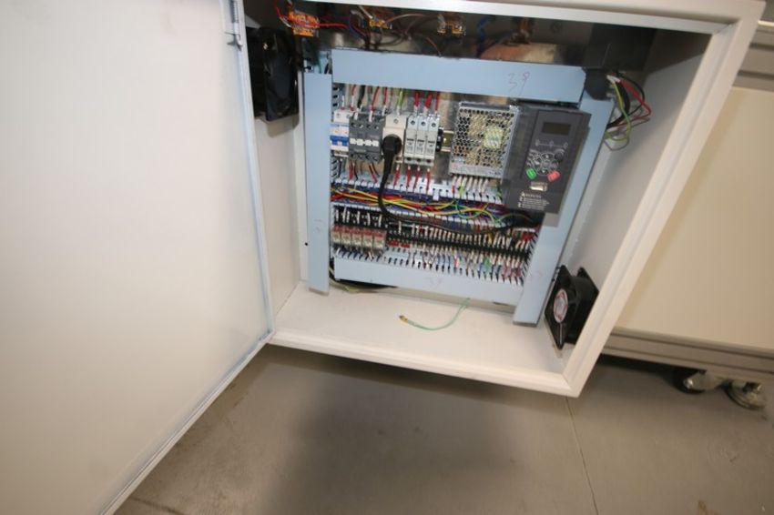 Ultra-Sonic Spindle Medical Mask Manufacturing Machine, with Spindle Rack Containing Top Laying, Filter Layer, & Nose Bridge Spindles, with Section That Stamps Ear Loops, Includes Straight Section of Discharge Conveyor, Aprox. 55-1/2" L x 11-3/4" W Belt (NOTE: Previously Running 65-70 Masks Per Minute; NEW Purchase Price in 2020--$165,000.00 USD)(LOCATED IN LAS VEGAS, NV)