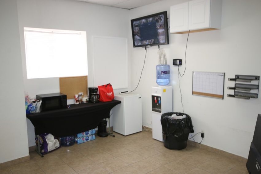 Lot of Assosted Office Furniture, Includes (2) Desks, (2) L-Shaped Desks, (4) Cushioned Office Chairs, Monitor, Key Boards, Coffee Makers, Water Jugs, Office Heaters (NOTE: Does Not Include Luggage, Lab Top, or Other Items Owned by Auctoineer in Photo) (LOCATED IN LAS VEGAS, NV)