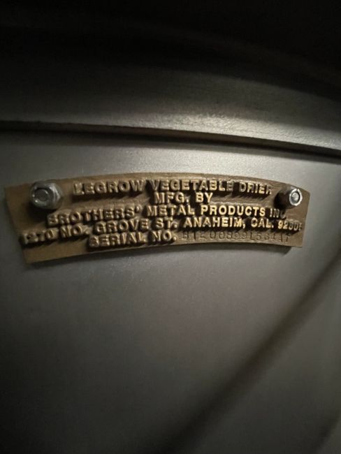 LEGROW / BROTHERS METAL PRODUCTSCENTRIFUGAL VEGETABLE SPIN DRYER, S/N B1200899L5G4AT, WITH VFD SPEED CONTROLLER, PURCHASED NEW AND NEVER PUT INTO PRODUCTION(INV#80341)(Located @ the NEW MDG Auction Showroom V2.0 @ 2000 Tech Center Dr., Monroeville, PA 15146)(Handling, Loading & Site Management Fee: $200)