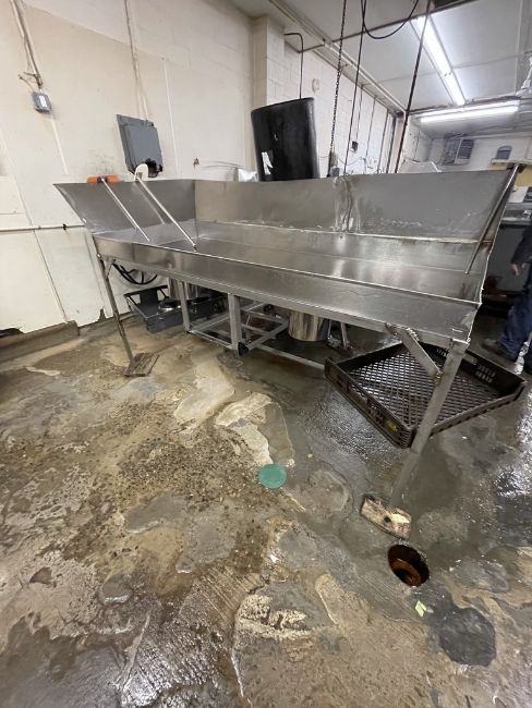 S/S WASHING AND PACKOFF TABLE,APPROX. 84" L X 36" W, WITH BOTTOM OUTFEED(INV#80363)(Located @ the MDG Auction Showroom v2.0 - 2000 Tech Center Dr., Pgh., PA 15146)(Handling, Loading & Site Management Fee: $100)