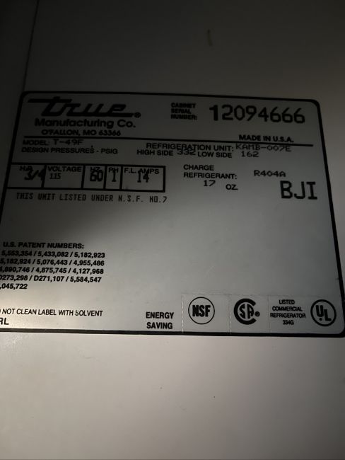 TRUE MANUFACTURING 2-DOORS/S FREEZER, MODEL T-49F, S/N 12094666, 115 V, 1 PHASE(INV#80362)(Located @ the MDG Auction Showroom v2.0 - 2000 Tech Center Dr., Pgh., PA 15146)(Handling, Loading & Site Management Fee: $100)