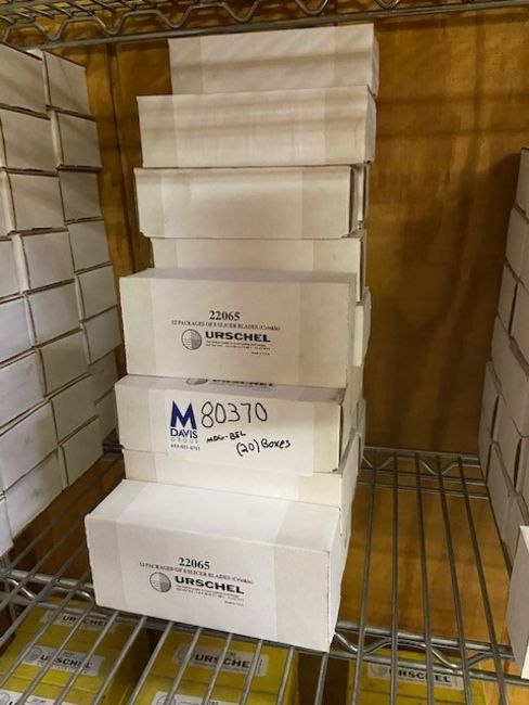 URSCHEL SLICER BLADES (CRINKLE), (20) BOXES, EACH BOX INCLUDES (12) PACKAGES OF (8) SLICER BLADES (CRINKLE), PART NUMBER 22065 (INV#80370)(Located @ the MDG Auction Showroom in Pittsburgh, PA)(Handling, Loading & Site Management Fee: $25.00 USD)